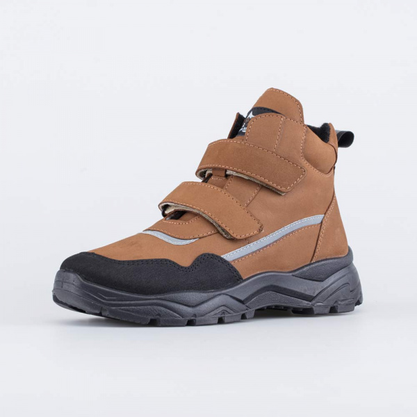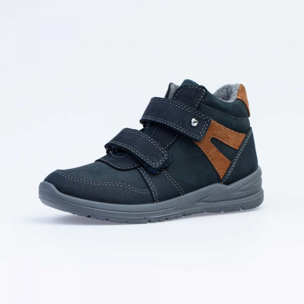 Модные ботинки выполнены в спортивном стиле и гарантируют непоседе комфорт и безопасность. Верх полностью из гидрофобного нубука,который придают изделию эффектный внешний вид. Утепленная подкладка из байки сохраняет тепло. Дополнительную защиту от осенней прохлады придаёт войлочная стелька, которую можно вытащить для просушки, воспользовавшись специальной петлёй. В качестве фиксации на ноге используются ремни, которые регулируются индивидуально по полноте стопы и фиксируются липучкой. Мягкий кожаный манжет создает комфорт при ходьбе и предотвращает натирание ножки ребенка. Подошва клеевая, выполнена из термоэластопласта – легкого, прочного материала, обладающего отличным амортизирующим и теплосберегающим эффектом. Удобная колодка обеспечивает комфорт во время долгих прогулок.