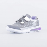 Кроссовки для девочки с верхом из материала SoftShell со светодиодами. Верхний слой из материала SoftShell - защита от непредсказуемых погодных условий и комфортный микроклимат внутри. Внешний слой отталкивает влагу, обладает эластичностью и повышенной прочностью. Внутренний слой — сохраняет тепло и позволяет ноге «дышать». Носочная и пяточная части защищены накладками из полиуретана, повышающими долговечность изделия. Текстильная подкладка на основе полиамида. Стелька, на 80% состоящая из натуральной кожи, позволяет ноге \'дышать\'. Мягкий манжет предотвращает натирание во время носки. Липучки-велькро дают возможность отрегулировать обувь по подъему, а также быстро обуваться и разуваться. Модель декорирована зеркальными вставками, а также звездным принтом и оснащена мигающими лампочками с яркими светодиодами. Подошва выполнена из ЭВА (этиленвинилацетата) - эластичного, амортизирующего и легкого материала. Модель анатомически правильная: имеет небольшую приподнятость задней части по отношению к носочной.